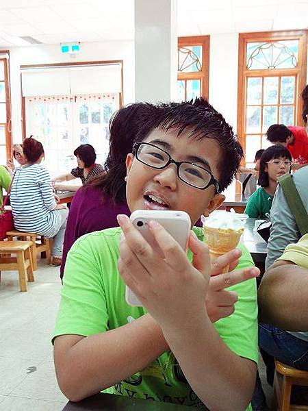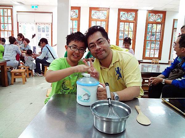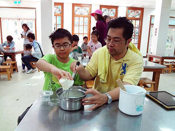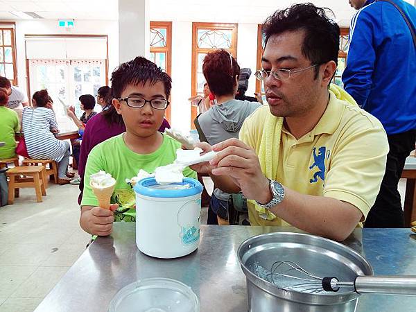 我們當天把車子停在烤肉區,所以等於是從下坡一直往上走...,牧場區域雖大,但不會讓人有走不完的感覺, 要到禮品/餐廳及旅客服務中心區,會先經過幾個DIY 教室及住宿區....看到牧場內有DIY 活動,但必須先預約,因此我們先到珊珊教室去買票, 預定3:20pm 回到它旁邊的飛飛教室去DIY 冰淇淋