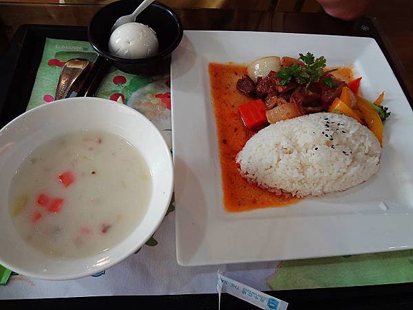 旅客資訊中心 及 紅穀倉餐廳 牧場裡面有很多餐廳,這是我們中午用餐的地方,主要供應簡餐及麵食,旁邊是火鍋餐廳, 走到對面區域有禮品店.速食店,另外也有中式合菜餐廳等,用餐方面算是有非常多元化的選擇