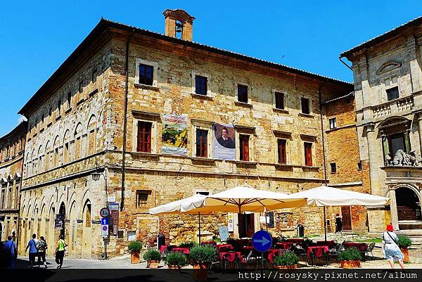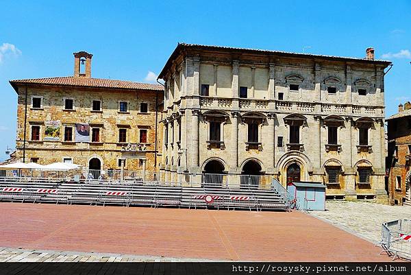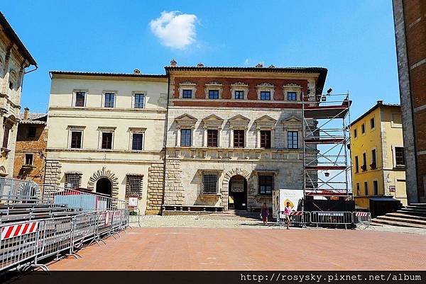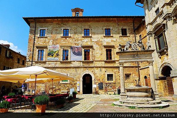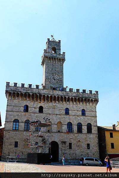到達大廣場, 正面是市政廳 (Communal Palace), 它的設計者與佛羅倫斯麥迪奇宮的是同一人(Michelozzo)