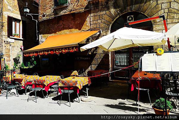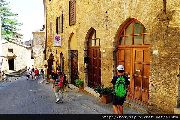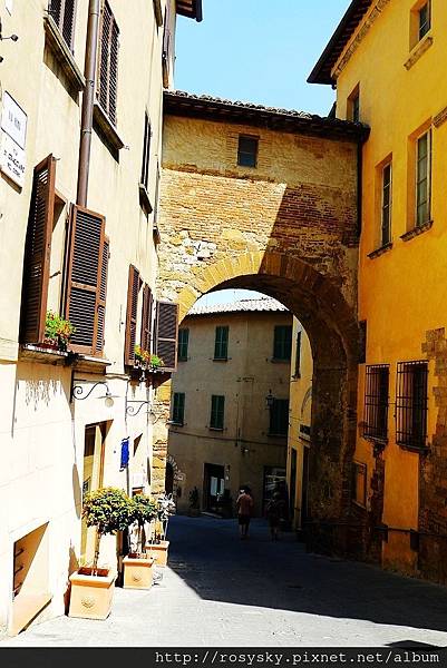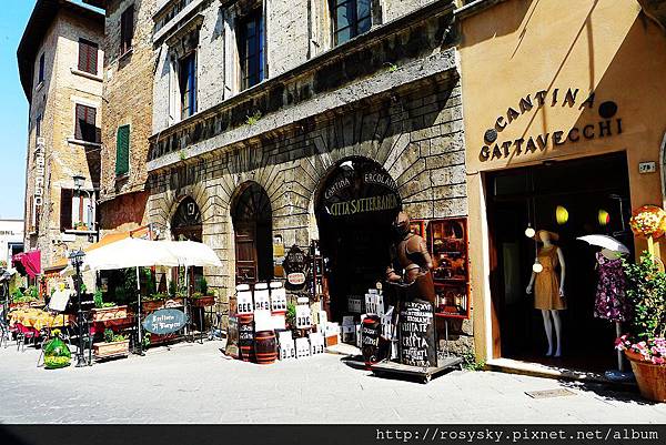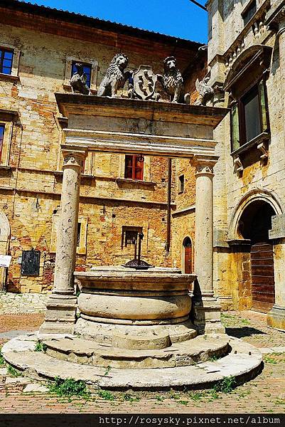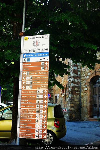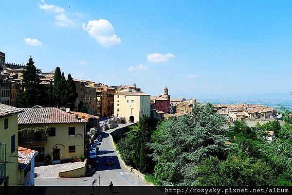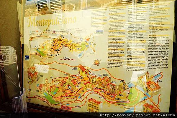 從皮恩札離開, 近午時分到達另一個山城~蒙特普西安諾 (Montepulciano), 這個建立在小山丘上的中世紀古城, 比皮恩札大些,從城門進入往市政廳所在的大廣場前行, 一路上坡也是挺累人的, 城內有文藝復興風格的建築, 生產的貴族酒(Vino Nobile di Montepulciano)被認為是義大利最佳的葡萄酒.