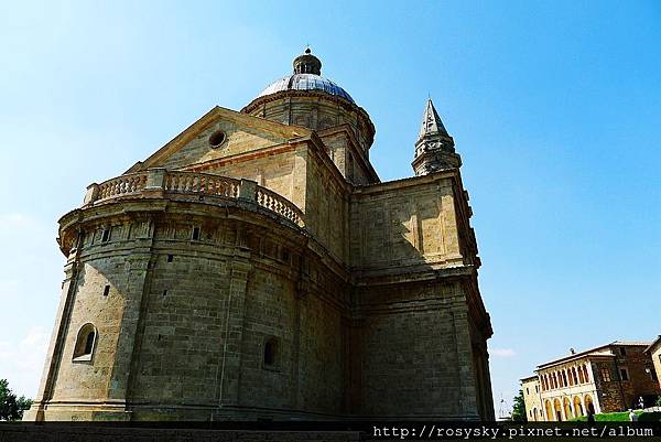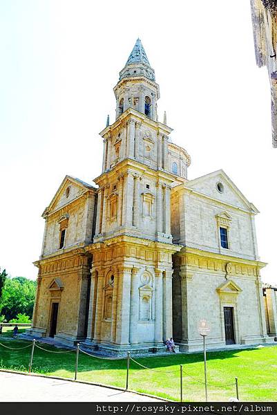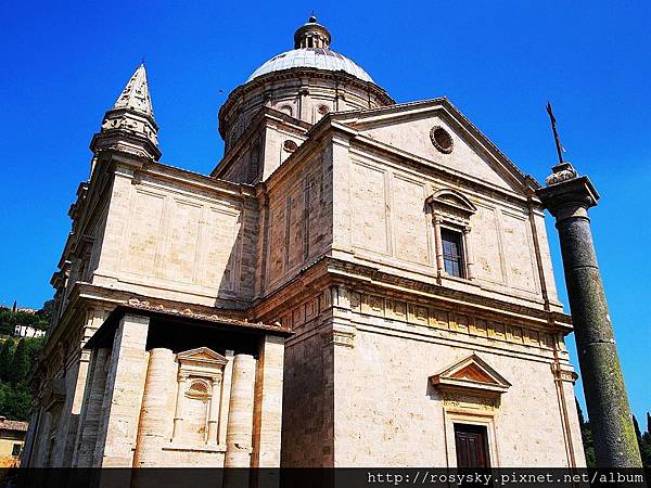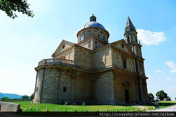 接著, 我們開車前往城牆下方的聖畢雅久教堂(Tempio di San Biagio), 它是美麗的文藝復興教堂建築, 平面是希臘十字結構, 有個大圓頂