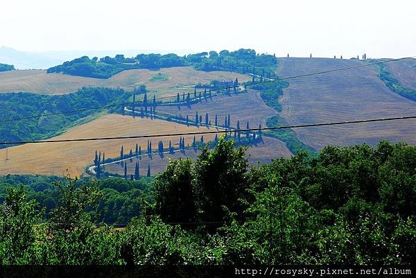 離開蒙特普西安諾, 前往下一個住宿地前, 我們開車去 La Foce 看之字形的絲柏之路, 它是1920年美國女士 Iris 為了Giardino di La Foce 莊園所種植的, 看到兩個之字形的絲柏之路了, 但畫面中有電線 .....