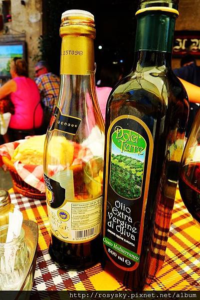 在這幾天的餐桌上, 每次都可以看到的新鮮橄欖油及葡萄酒醋, 這二瓶佐料可以用來沾麵包或其他食物