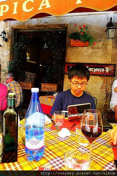 午餐點了沙拉.牛排及義大利奶油麵, 聽說佛羅倫斯牛排的牛是出產自這附近的山谷, 所以我們當然點了牛肉來嘗嘗..果然味道不錯... 科科