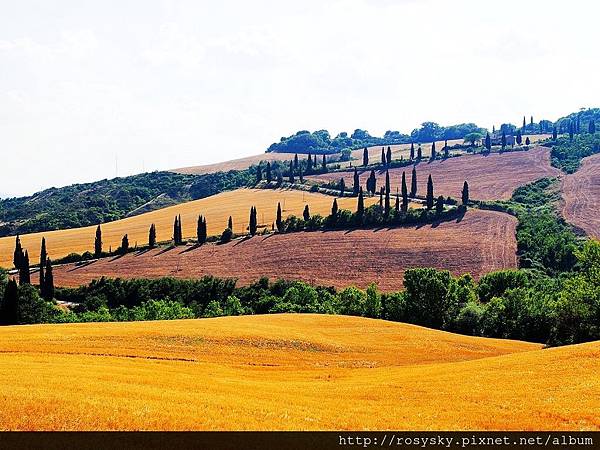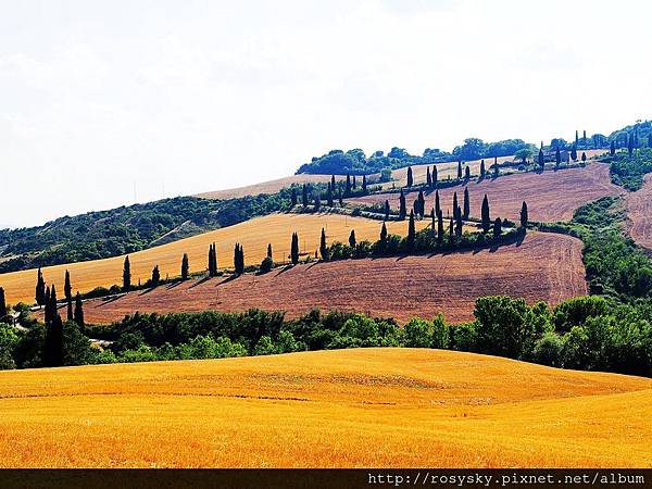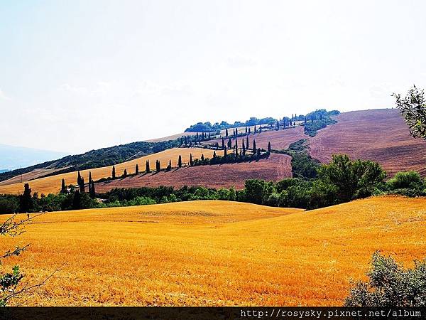 因為看到明信片上有聖畢雅久教堂與蒙特普西安諾城一起的照片, 所以我們也一邊開車往下走, 一邊尋找適合的地點拍照, 成果如下 ~